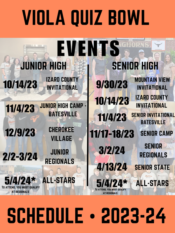We are still accepting new members to both the Junior High and Senior High Quiz Bowl teams. Students who are interested in joining can come to Mrs. Walker's room on Thursday, Aug. 31, at lunch.