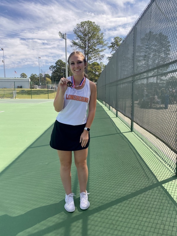 Aubrey May got a buy to the second round of girls singles. She faced Alyssa Conklin of Maumelle Charter and won 6-4, 6-3. She lost in the quarterfinals to Madeleine Tanguaey of Conway Christian 6-0, 6-0. Aubrey went on to place 3rd in the tournament by defeating Addie Overturff of Shirley, 6-1, 6-3. She advanced to the State Tournament.