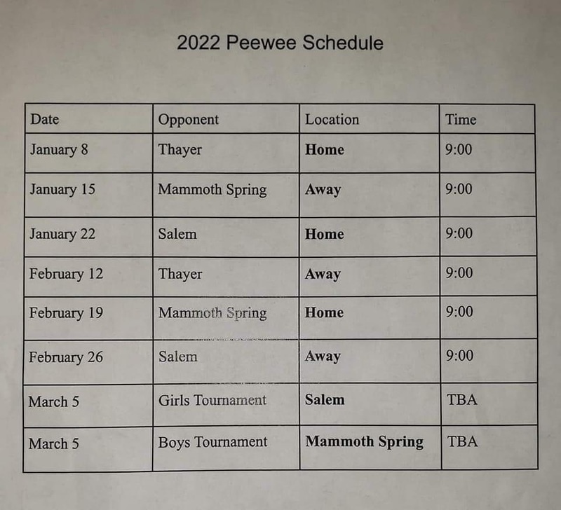 2022 Peewee Schedule