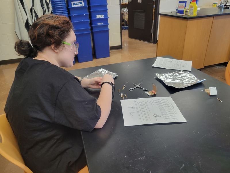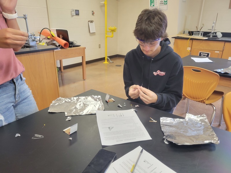 By the time the seniors get to Physics, it's sink or swim time. They were tossed into the lab the first day of school and told it was a "Practical Lab Safety Test." While they engineered rockets out of matches, not a single one had to be reminded to tie back hair or put on safety goggles. (AJ had the best rocket, but hid in every picture)