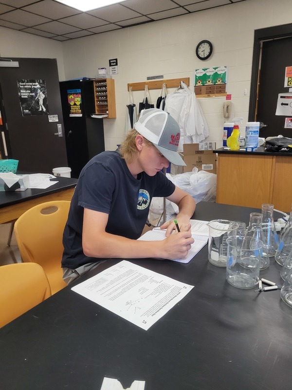 Finally, the 9th grade got in on the action this week. They had week-long safety lessons, a Lab Safety Test, and some lessons and practice on measurement and accuracy before being tossed into the lab. Look how careful they are being: