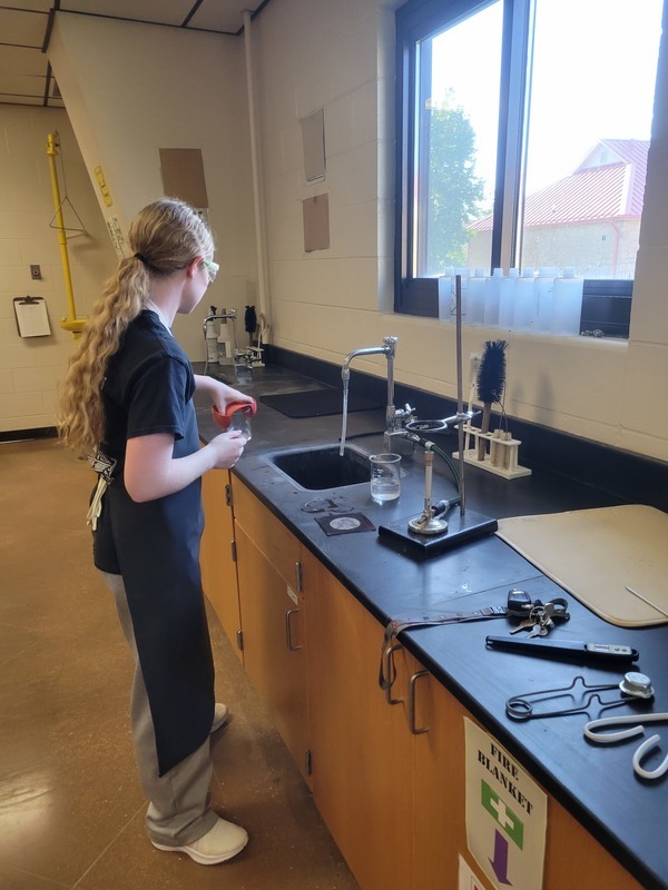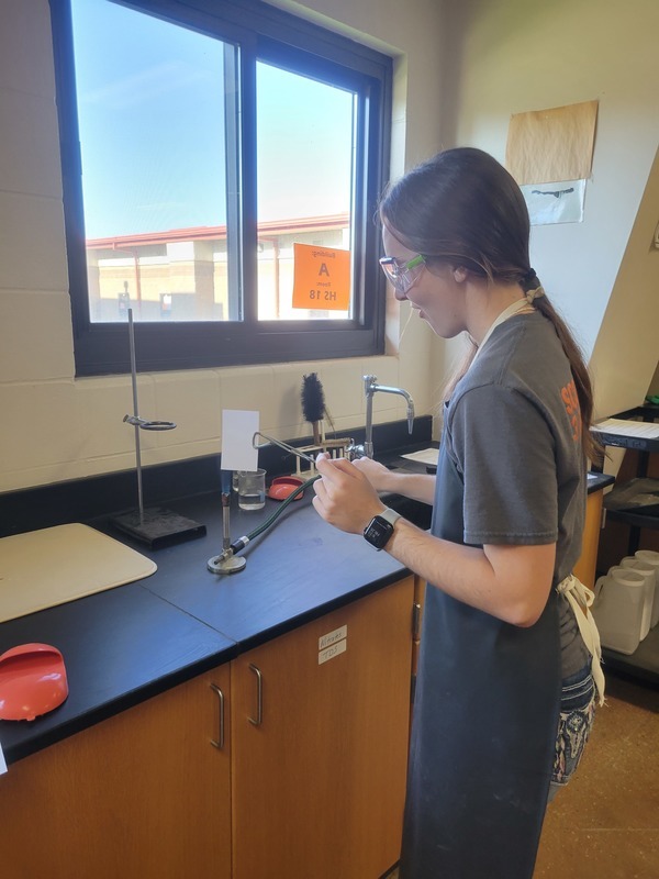 After three days of Safety Training and a Lab Safety test, the Chemistry students got in on the action. They enjoyed learning to light and adjust the Bunsen Burners and conducted a few experiments to determine the hottest part of the flame, something they will need to know for the rest of the year.